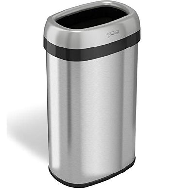 iTouchless 16 Gallon Oval Open Top Trash Can and Recycle Bin with Odor Control System, Stainless Steel Commercial Grade, Large 12-Inch Opening, for Home, Restaurant, Restroom, Office, 61 Liter