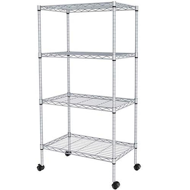 JS HANGER Wire Shelving Unit, 4-Tier Heavy Duty Height Adjustable Rolling Metal Shelves for Storage, 440 lbs Capacity, 23.23''W X 13.4''D X 47.24''H, Silver
