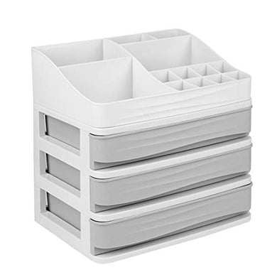 JULY'S SONG Cosmetic Makeup Organizer with Drawers, Plastic Bathroom Skincare Storage Box Brush Lipstick Holder(S-3, Grey)