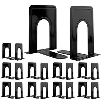 Jekkis 20pcs Metal Bookends, Heavy Duty Book Ends, 6.6 x 5.7 x 4.9 inches Black Bookend Supports, Nonskid Bookends for Shelves, Office and Home