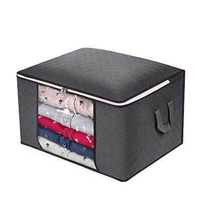 Large Capacity Clothes Storage Bag Organizer with Reinforced Handle Thick Fabric for Comforters, Blankets, Bedding, Foldable with Sturdy Zipper, Clear Window, 23Gal. (1, Grey)