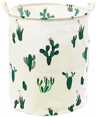 Large Foldable Waterproof Canvas Laundry Hamper Bucket for Storage Bin,Kids Room,Home Organizer,Nursery Storage,Baby Hamper with Cactus Design(Green/Pink)