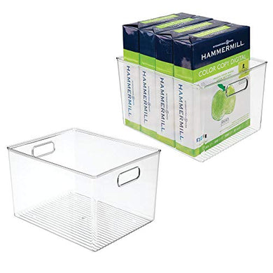 mDesign Plastic Storage Container Bin with Carrying Handles for Home Office, Filing Cabinets, Shelves - Organizer for School Supplies, Pens, Pencils, Notepads, Staplers, Envelopes, 2 Pack - Clear