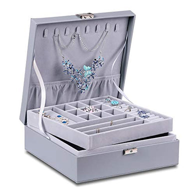 misaya Women Jewelry Box Organizer 2 Layer Large Lockable Display Jewelry Holder for Earring Ring Necklace, Gray