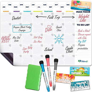 Monthly Magnetic Planner for Refrigerator 17x12 with 3 Markers & 4 Season Magnets & Eraser - Dry Erase Monthly Magnetic Fridge Calendar - Horizontal Magnetic Monthly Calendar for Refrigerator