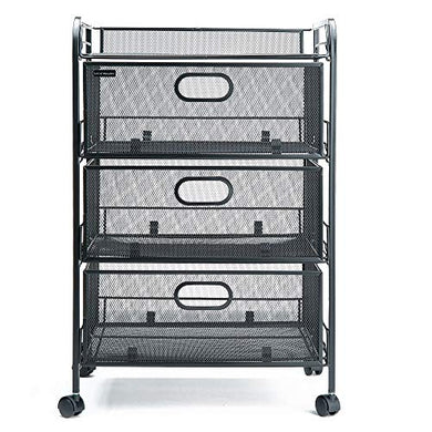 Mind Reader 4DRMESH-BLK 3 Rolling Mesh, Metal Drawers, File, Utility, Office Storage, Heavy Duty Multi-Purpose Cart, Silver, Black