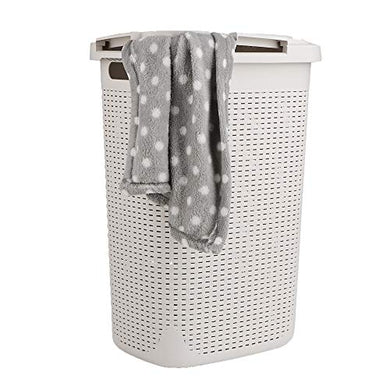 Mind Reader Basket Laundry Hamper with Cutout Handles, Washing Bin, Dirty Clothes Storage, Bathroom, Bedroom, Closet, 60 Liter, Ivory