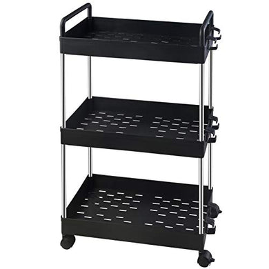 Ronlap 3 Tier Classic Storage Rolling Cart, Plastic Slide Out Storage Organizer Tower, Narrow Mobile Shelving Unit with Handle, Skinny Utility Cart with Wheels for Kitchen Bathroom Laundry Room, Black