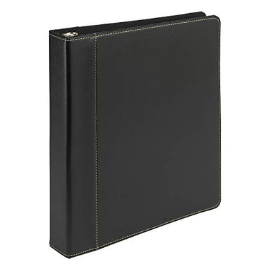Samsill 1" Contrast Stitch Leather 3 Ring Binder, Portfolio Organizer, 3 Ring Binder, (8.5 x 11), Holds 200 Sheets, Black