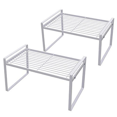 Shantton 2 Pack Kitchen Cabinet Shelf Counter Organizer Rack Pantry Storage Bathroom Bedroom Office Table Desk Space Saving Steel Frame Stackable Rust Resistant Non Slip White