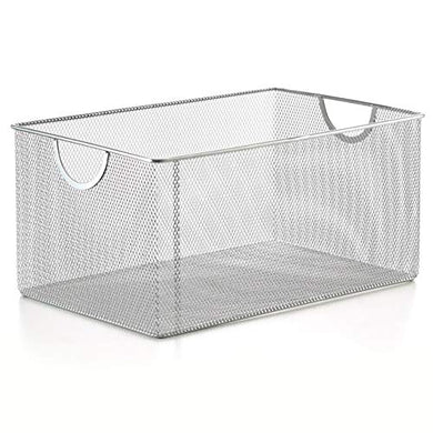 Silver Mesh Open Bin Storage Basket DVD Cd Book Holder, Closet Cabinet Organizer 12.1" x 7.87" x 5.87" Model #1116