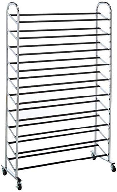 Whitmor 10 Tier Shoe Tower - 50 Pair - Rolling Shoe Rack with Locking Wheels - Chrome