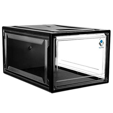YOUR KIX Drop Front Shoe Box, Black Stackable,1 Case Sold Individually, Stylish Display Case for Men and Women, Magnetic, Large Clear Plastic Shoes, Storage Boxes for Sneaker or Favorite Kicks, Shoe Organizer, XL, Shoe Containers for any Space.