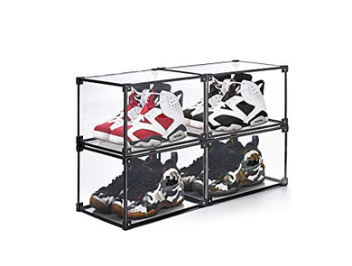 YPath Clear Acrylic Shoe Box Plastic Stackable-Sneaker Storage Drawer Containers Shelf-Magnetic Lids Side Open Display Case Organizer for Sneakerheads, Fully Transparent Design for Collectibles(4PCS)