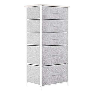 YITAHOME Fabric Dresser with 5 Drawers - High Storage Tower, Organizer Unit for Bedroom, Living Room, Hallway, Closets & Nursery - Sturdy Steel Frame, Wooden Top & Easy Pull Fabric Bins - Light Grey