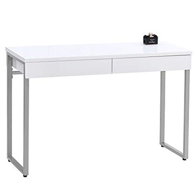 GreenForest Vanity Desk 47’’ Glossy White Console Table Computer Makeup Desk with 2 Drawers and Solid Metal Legs for Living Room Entryway Hallways