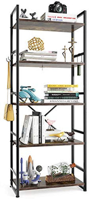 HAIOOU Bookshelf, 5-Tier Bookcase, Sturdy Antique Wood Design with Industrial Black Metal Frame Shelving Unit, Vintage Storage Organizer Standing Shelf for Home Office