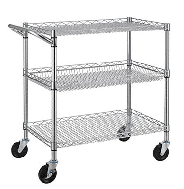 Finnhomy 3 Tier Heavy Duty Commercial Grade Utility Cart, Wire Rolling Cart with Handle Bar, Steel Service Cart with Wheels, Utility Shelf Plant Display Shelf Food Storage Trolley, NSF Listed